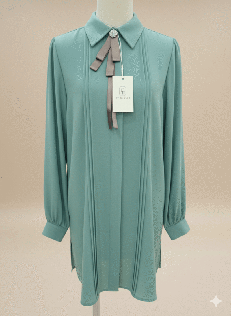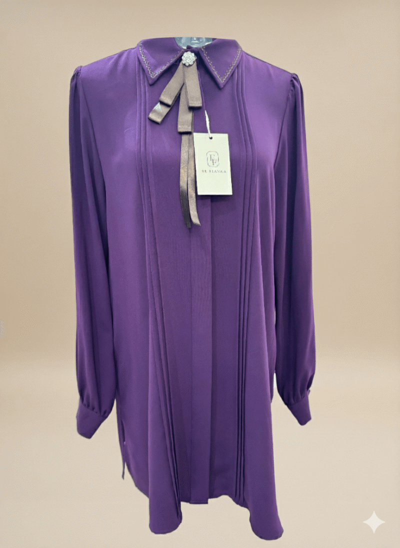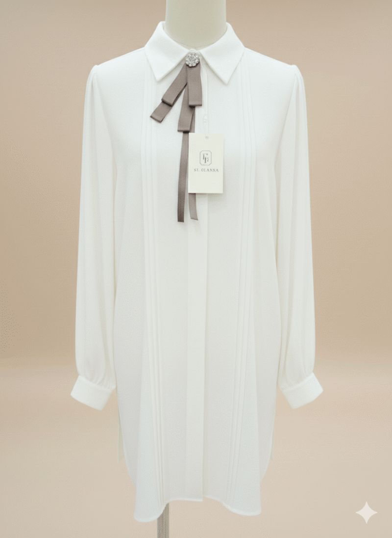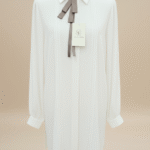 Chemise avec un col finement brodé et un petit noeud satiné. Cette blouse fluide apporte une élégance subtile.