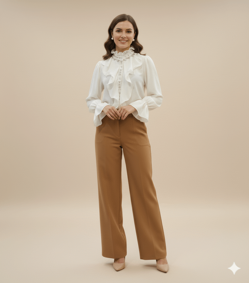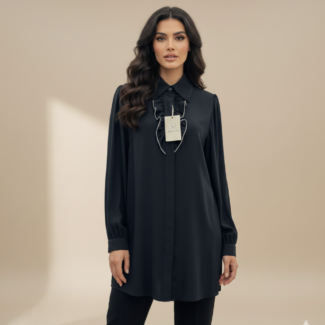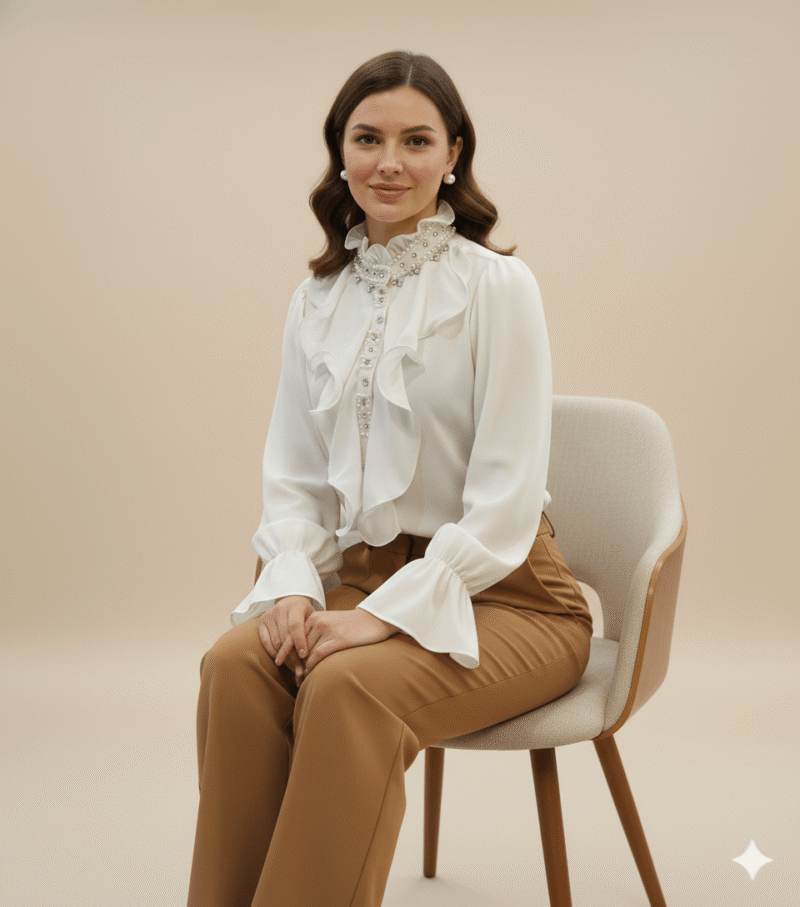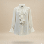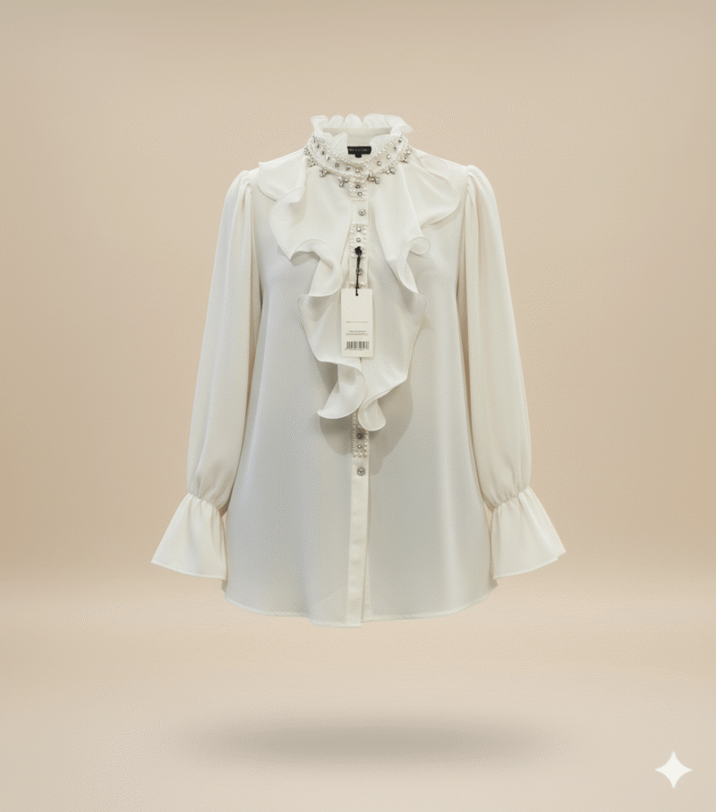 Chemise somptueuse fluide et élégante grâce à ses volants raffinés et son col ornés de perles.
