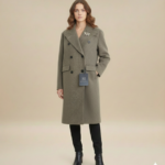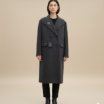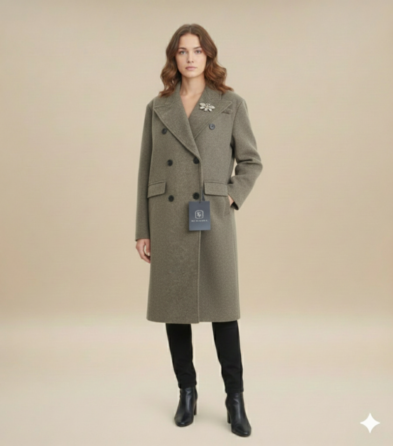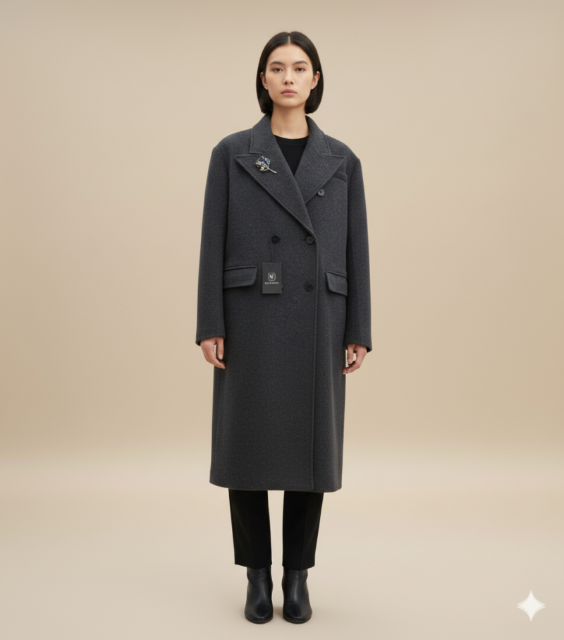 Manteau long à coupe droite avec un col large et des manches boutonnées .